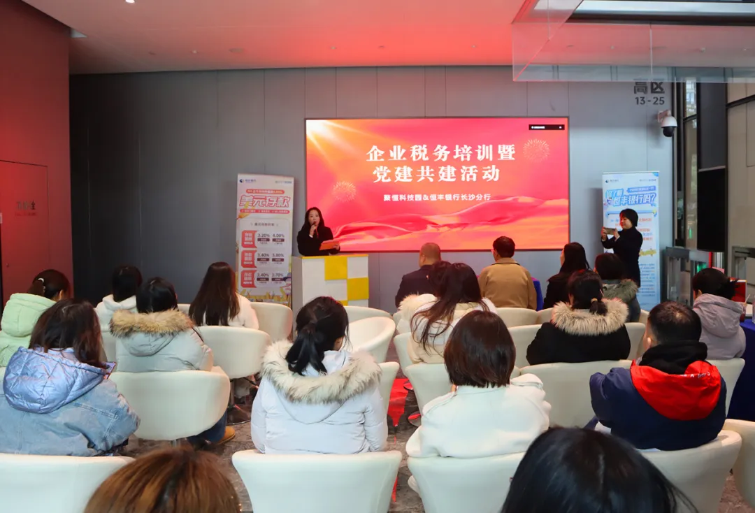 2024年12月11日下午,db电竞科技园党总支携手恒丰银行股份有限公司长沙分行支委会,共同举办了“红色合伙人·银企党建共建暨企业税务培训活动”,旨在深入学习贯彻习近平新时代中国特色社会主义思想,共建区域化共驻共建工作新格局,通过创新党建工作模式,深化银企合作,充分发挥党组织的战斗堡垒和党员的先锋模范作用,推进资源共享、优势互补、文明共建、共同发展。