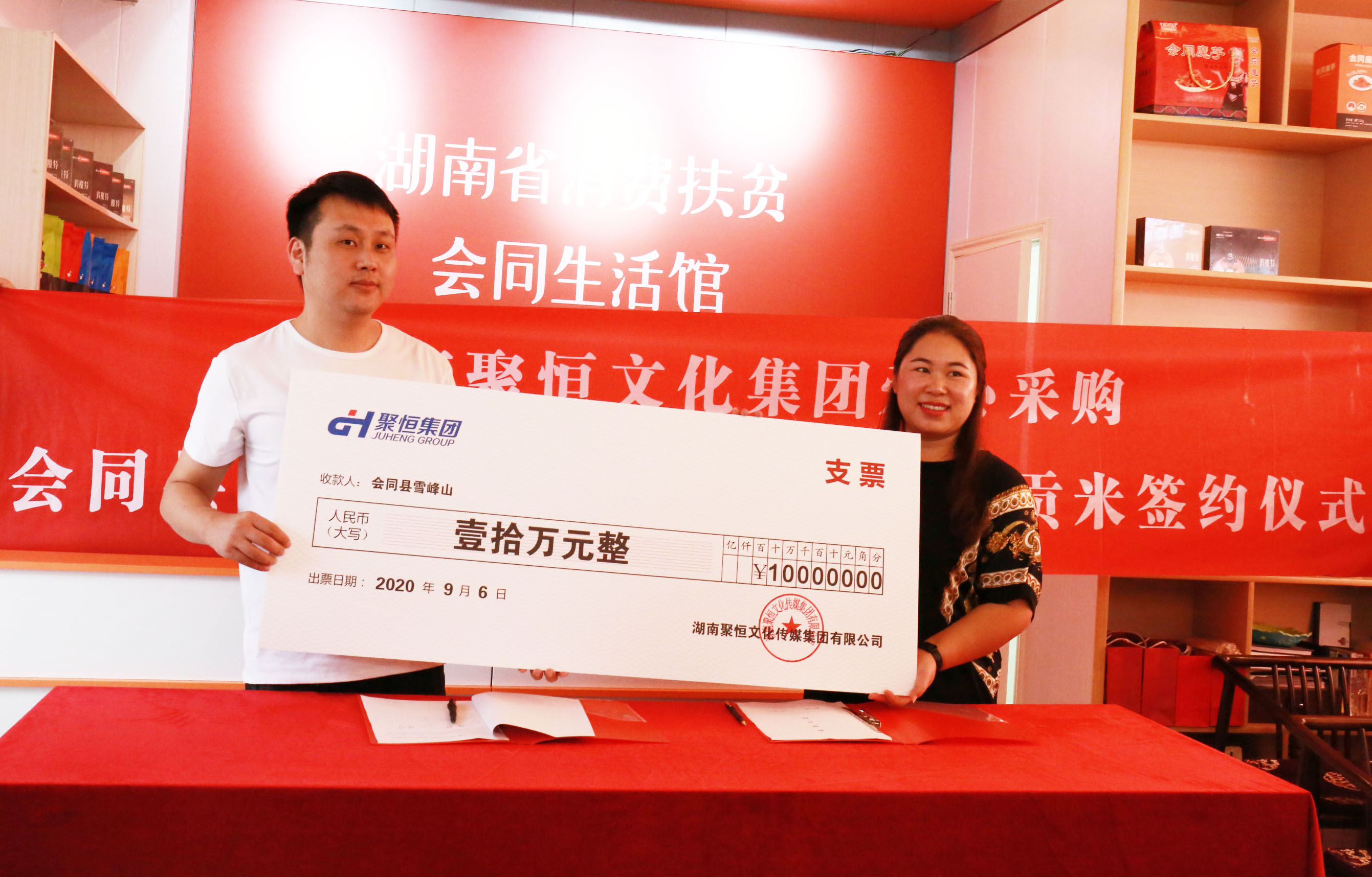 随后,双方领导签约爱心采购方案并合影留念。